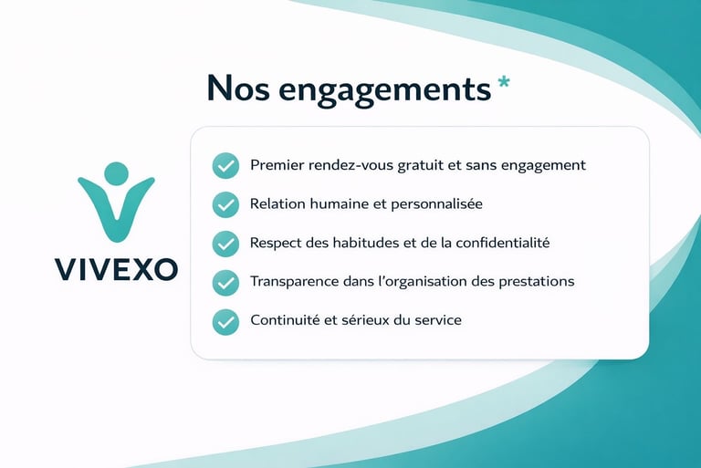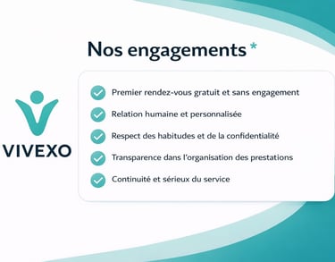Vivexo veille à assurer un accompagnement fiable, respectueux et adapté au quotidien de chacun.